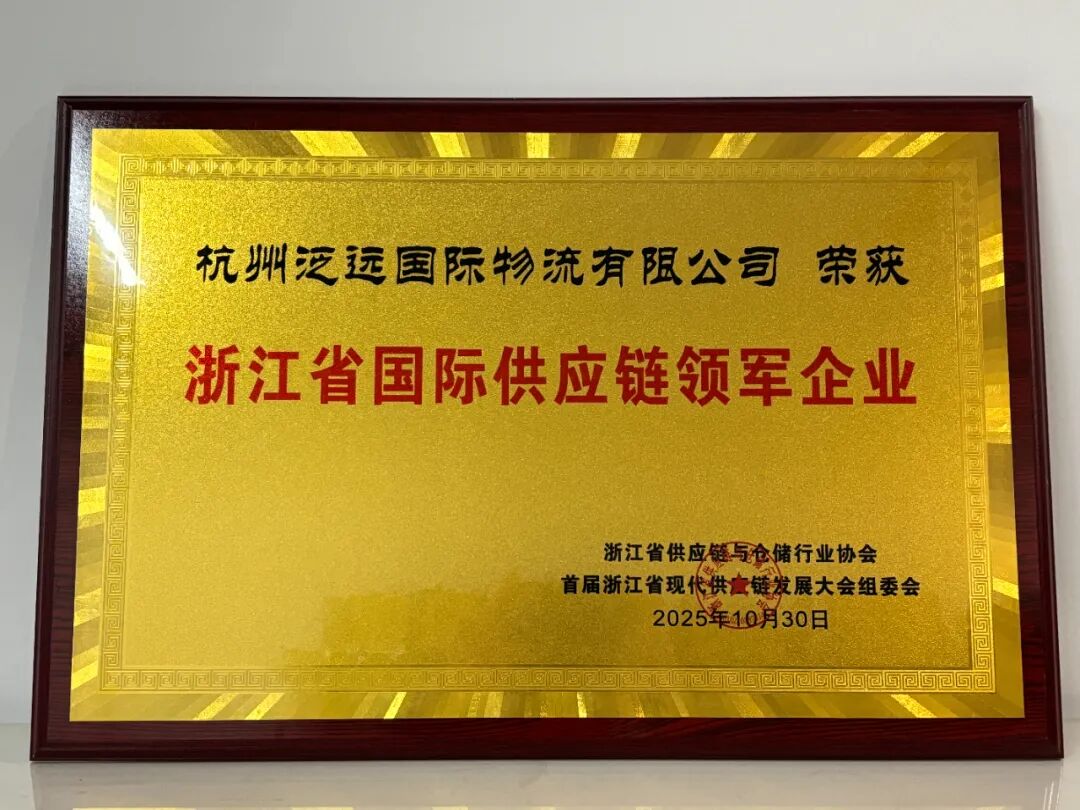 10月30日,由浙江省供应链与仓储行业协会主办的“2025首届浙江省现代供应链发展大会”于海宁顺利召开,泛远国际应邀参会,并被授予“浙江省国际供应链领军企业”称号。